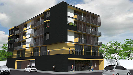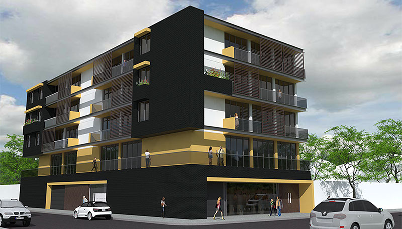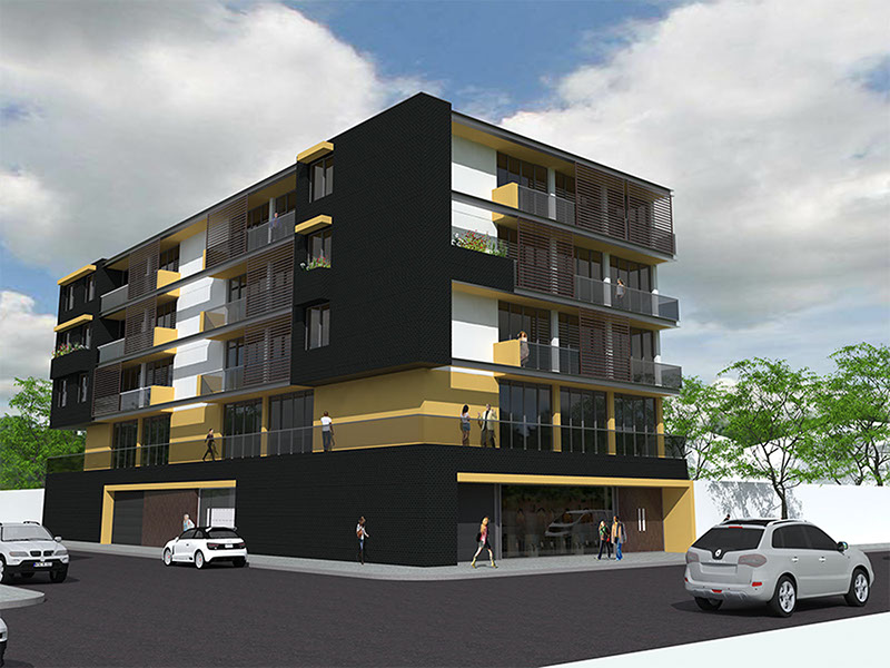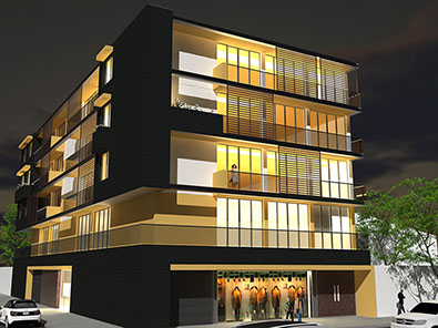 Projecto de Arquitectura do edifício de habitação e comércio na zona urbana do Maculusso, Angola.