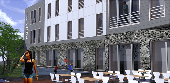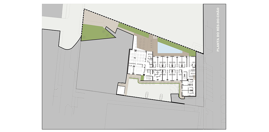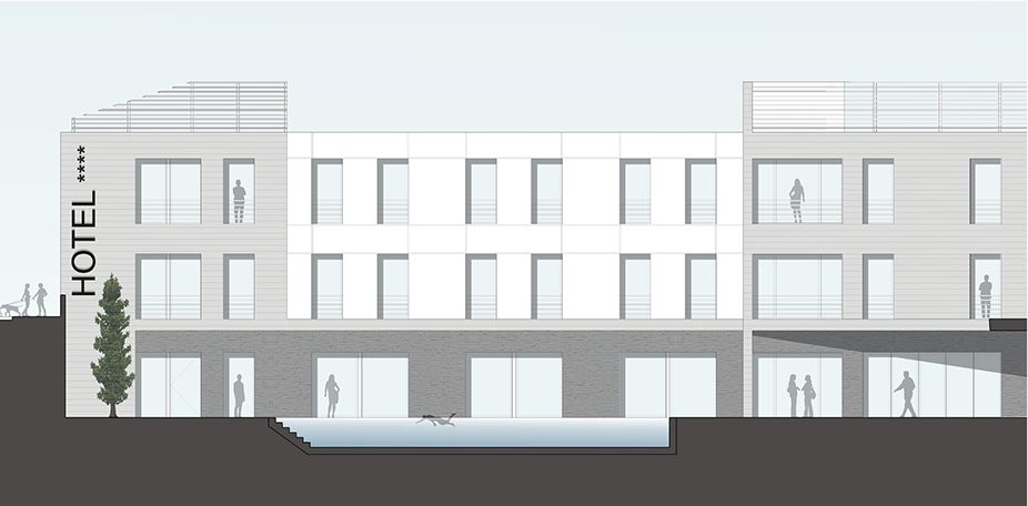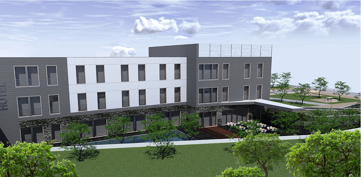 Projecto de Arquitectura para construção de uma unidade hoteleira de 4 estrelas que compreende o total de 60 unidades de Alojamento em quarto duplo.