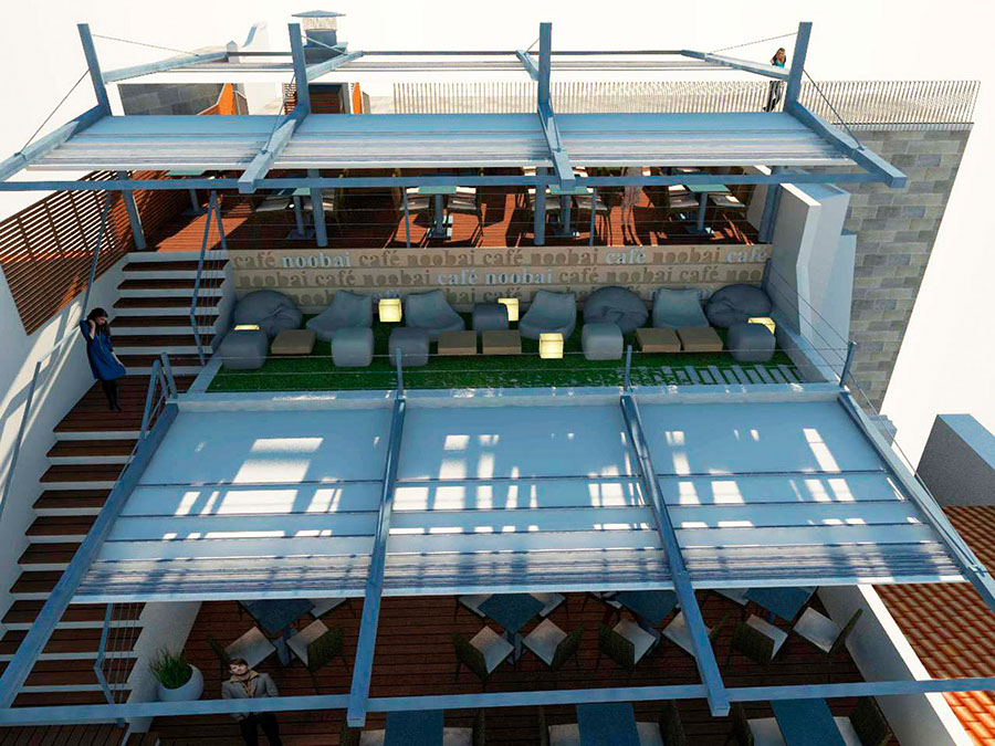 Projecto de remodelação do restaurante “Noobai”, que surge da necessidade de ampliar as áreas da sala interior, cozinha e esplanada, acompanhado de uma melhoria nos aspetos funcionais inerentes à actividade que neste se desenvolve.